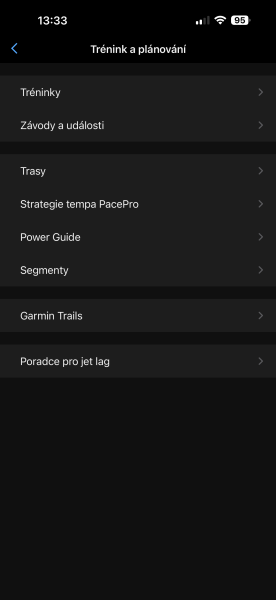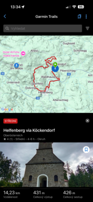 Když spustíte Garmin Connect, půjdete do záložky Více a zde klepnete na volbu Trénink a plánování, najdete tu i možnost Garmin Trails. Je to funkce pro mapování a navigaci, která vyhledává trasy při procházení mapy (funguje i na webu). Tyto trasy můžete filtrovat podle řady parametrů a poté je okamžitě odeslat do svého zařízení. Nemusíte je tedy vytvářet, protože už existují a hodinky vás poté podle nich dokážou navigovat.