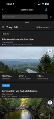 Garmin Connect+ Trails vám tedy poskytnou automatické návrhy tras podle lokality s pokročilými filtry, jako jsou vodopády, lesy, řeky, náročnost, povolení, zda je trasa vhodná pro psy a podobně. K tomu tu (teoreticky) najdete recenze, fotky, popisy od komunity, převýšení, odhadovaný čas, délku, obtížnost a off-line navigaci bez nutnosti ručního exportu. Problém je v tom, že komunita se zatím teprve buduje a že pokrytí je velice omezené a zatím se soustředí především výhradně na Rakousko, Německo, Švýcarsko a USA.