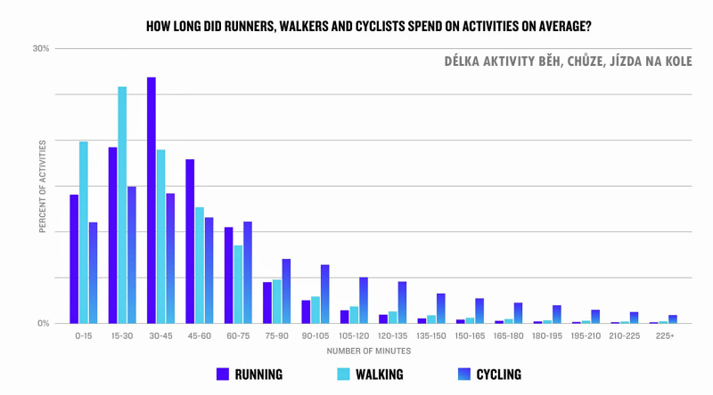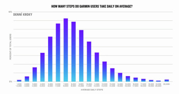 Důležité ale je, že více jak 50 % uživatelů Garminu ušlo v průměru alespoň 8 tisíc a více kroků denně, zatímco 28 % uživatelů ušlo v průměru 10 tisíc a více kroků. Pokud jde o pro mnohé z nás extrém, a to tedy 20 tisíc a více kroků denně, tak tuto hranici denně pokořilo 0,4 % uživatelů.