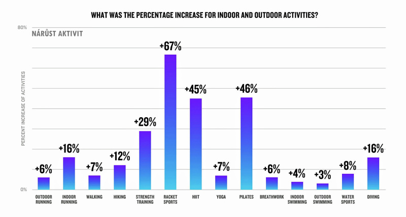 - Vysoký intervalový trénink (HIIT) vzrostl o 45 %.