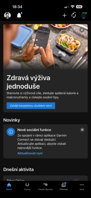 Pokud jste v poslední době otevřeli aplikaci Garmin Connect, možná se Vám zobrazila výzva k aktualizaci aplikace stejně jako mně. Hned na domovské obrazovce jsem tak viděl banner informující o nové sociální funkci. Ta sice vypadá nenápadně, může mít ale hlubší přesah.