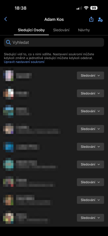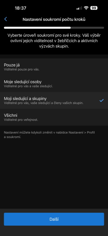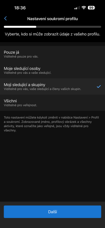 Najdete tu také možnost Zkontrolovat nastavení. To Vás proved nastavením toho, jak máte určené nastavení soukromí svého profilu. Můžete jej tu tedy přímo změnit, aniž byste jej hledali v nastavení. V podstatě jen určujete, jaká data o Vás mohou uživatelé Connectu vidět. Nakonec tu najdete i návrhy na nové přátelství, nikoli již tedy spojení.