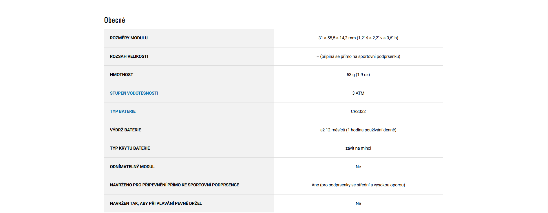 Baterie snímače HRM-Fit™ výdrží až jeden rok.