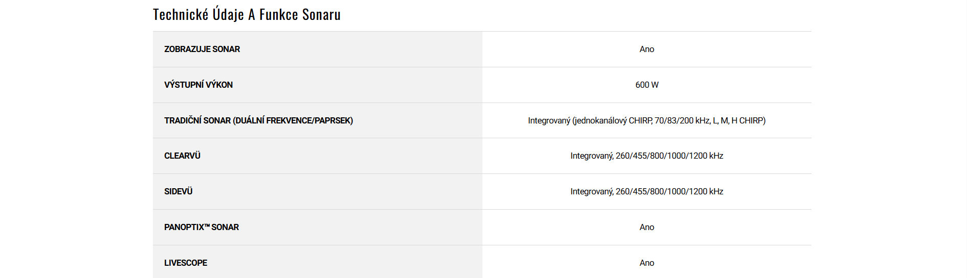 - Systém LiveScope™ Plus, včetně modulu GLS 10™ a sonarové sondy LVS34