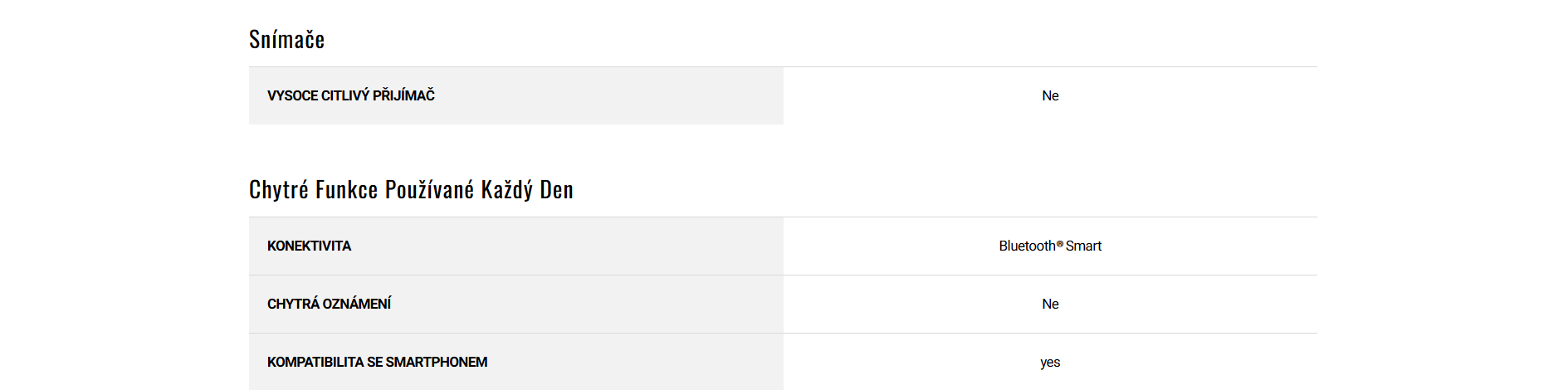 | Funkce: | Akcelerometr, Alarm na neaktivitu, ANT+, Automatický kalendář, Bluetooth, Budík / Alarm, Dotykové, GPS navigace, Kompas, Kontrola stavu baterie, Krokoměr, Měření denních aktivit, Monitoring spánku, Odpočítávací stopky, Osvětlení, Smart notifikace, Srdeční tep, Stopky / Chronograf, Vibrační upozornění, Výpočet spotřeby kalorií |
