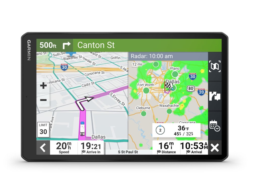 Navigace Gramin Camper vám ukáže přehled celé zbývající trasy a po sprárování s aplikací Garmin Drive™ uvidíte také předpoveď počasí na trase.