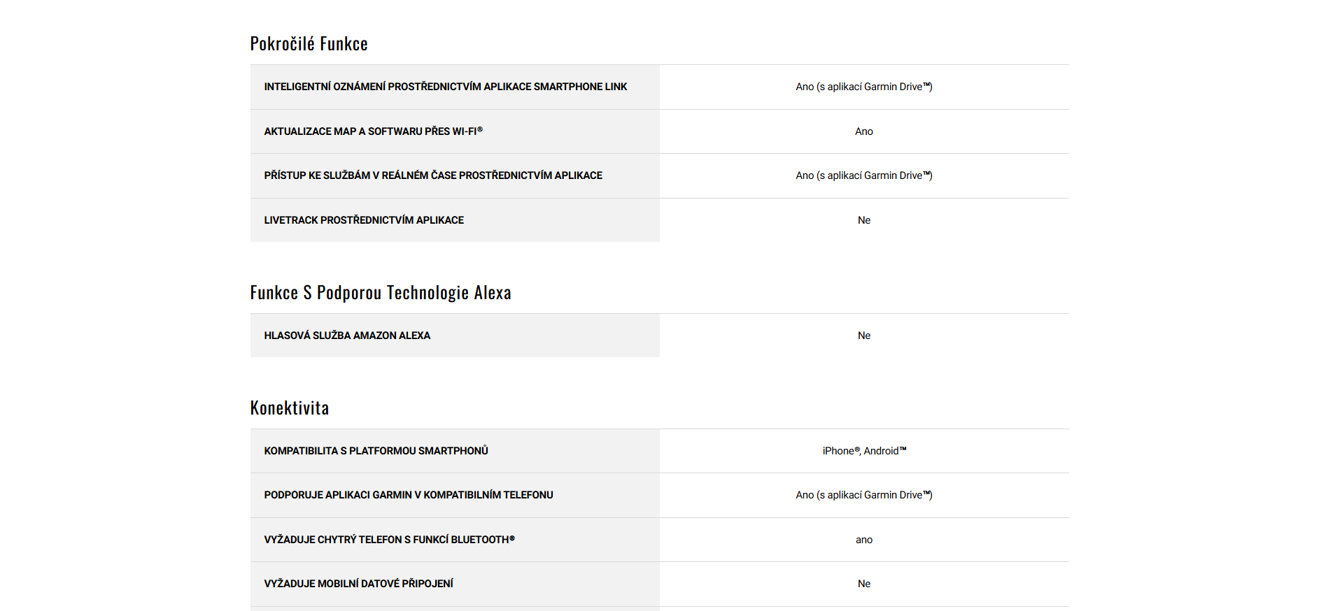 Navigaci lze spárovat s mobilní aplikací Garmin Drive™, která umožňuje importování a sdílení tras v podobě GPX souborů.
