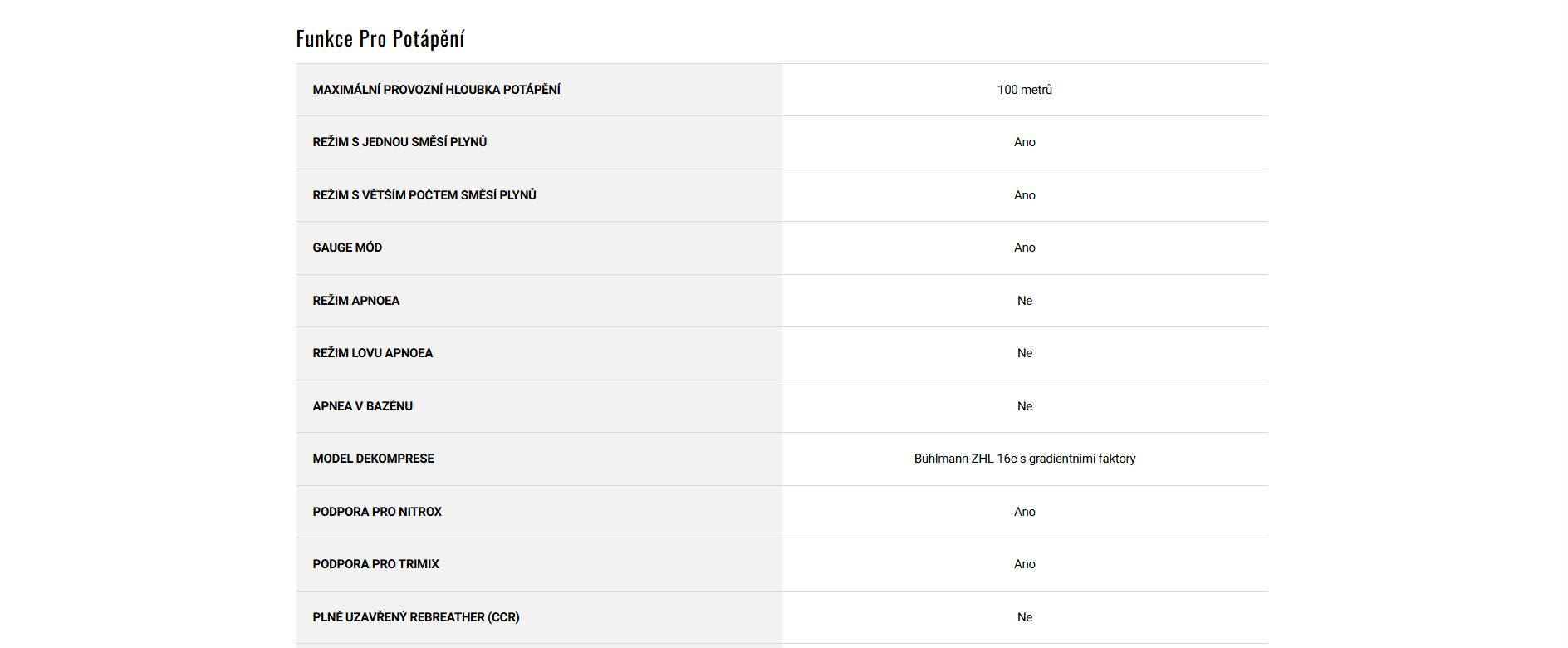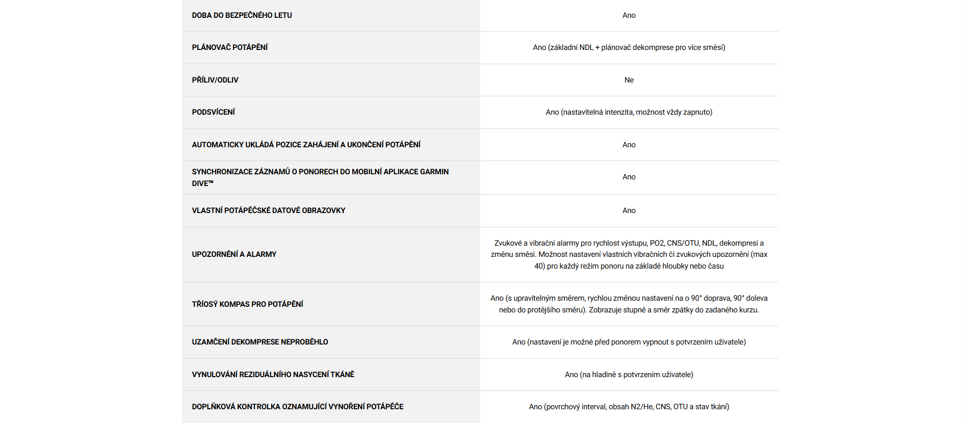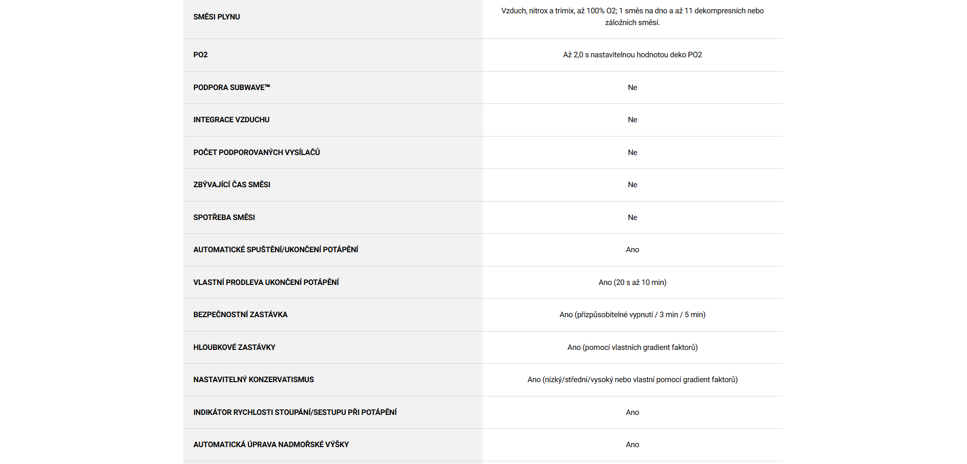- Možnost přepínání potápěčských profilů
