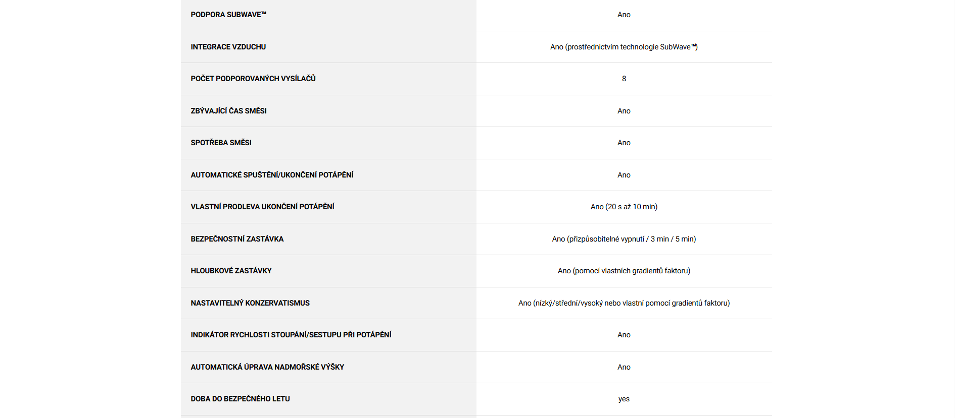 K dispozici je pokročilý plán dekomprese založený na vaší hloubce a časové délce ponoru, který vám pomůže při výstupu.