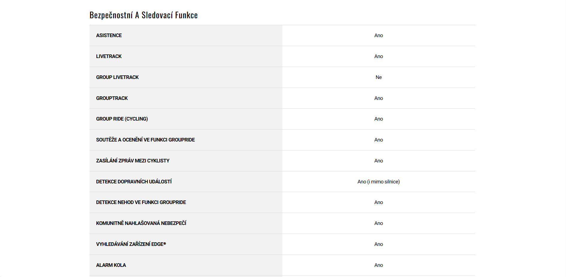 Při nehodě tato funkce odešle zprávu s vaší polohou2 nouzovým kontaktům. Funkce GroupRide vás upozorní na nehody ostatních jezdců ve skupině.