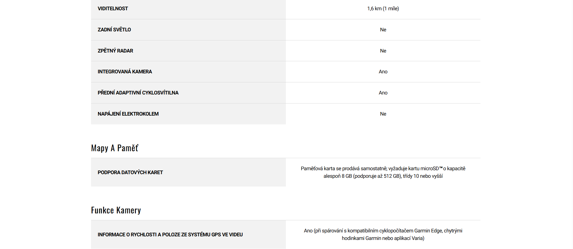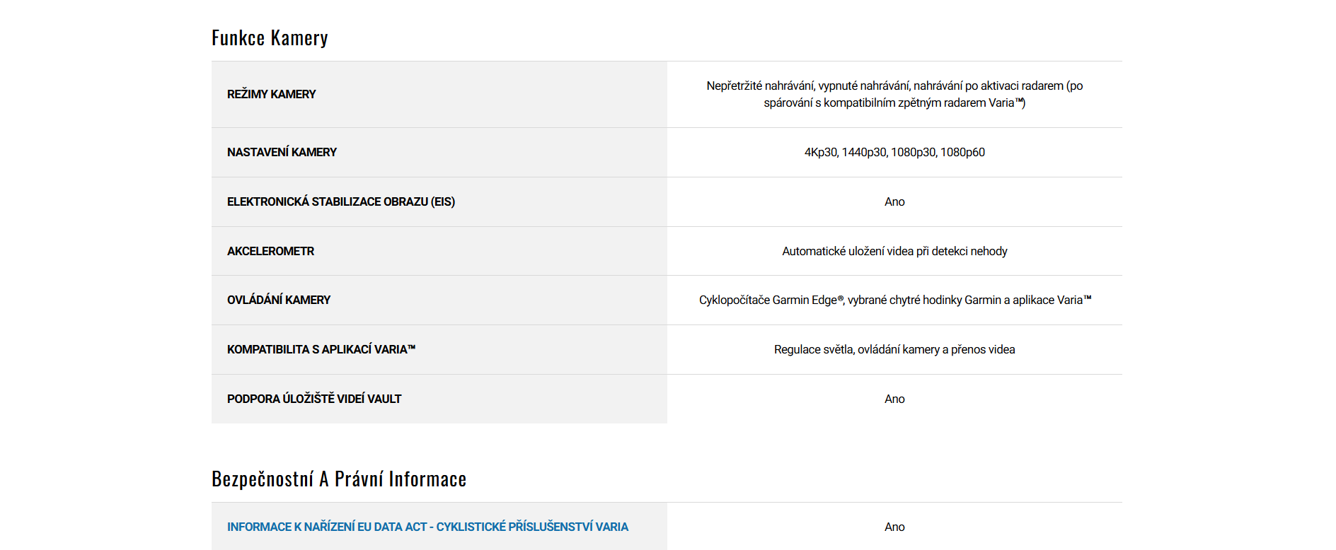 - přední cyklosvítilna Varia™ Vue ( předsunutý držák se zápustnou montáží, sada pro upevnění, nabíjecí / datový kabel, poutko, dokumentace )