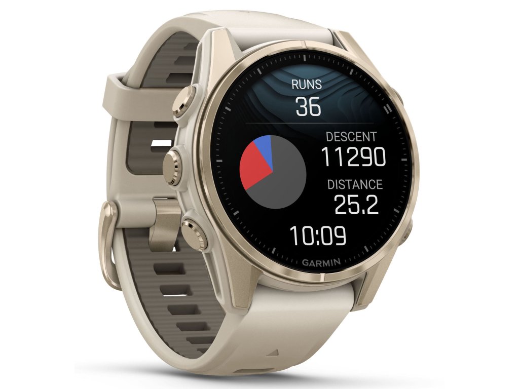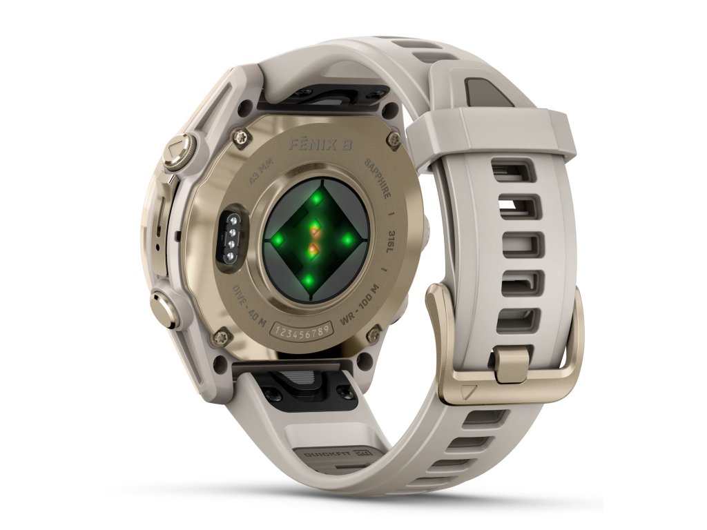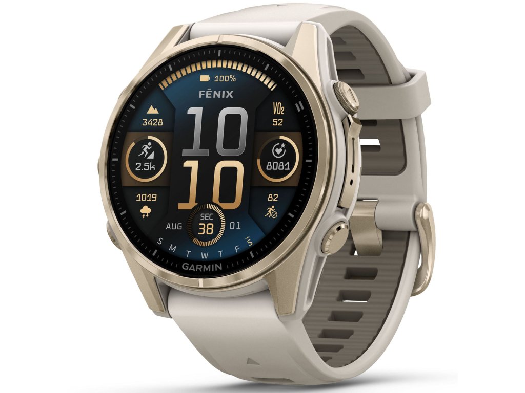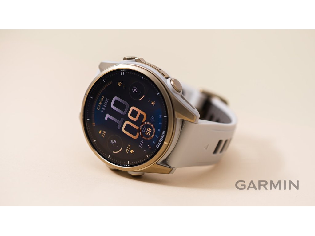 Garmin Fenix 8 – 43 mm, AMOLED, Sapphire, Soft Gold / Fog grey se silikonovým řemínkem 010-02903-11 Rozbaleno + možnost výměny do 90 dní + Topo Czech PRO Voucher