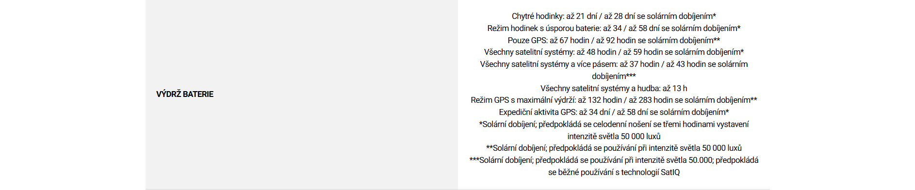 - Pouze GPS: až 28 hodin (22 hodin při trvale zapnutém displeji)