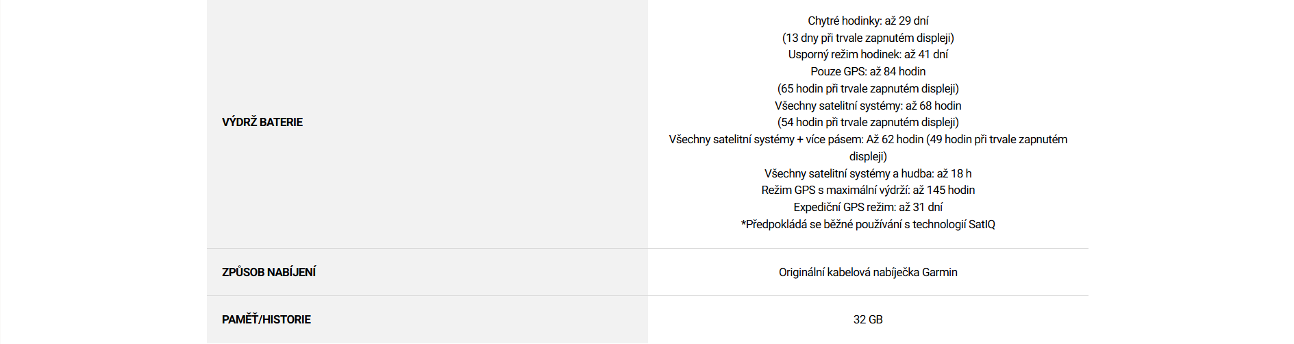 - Pouze GPS: až 28 hodin (22 hodin při trvale zapnutém displeji)