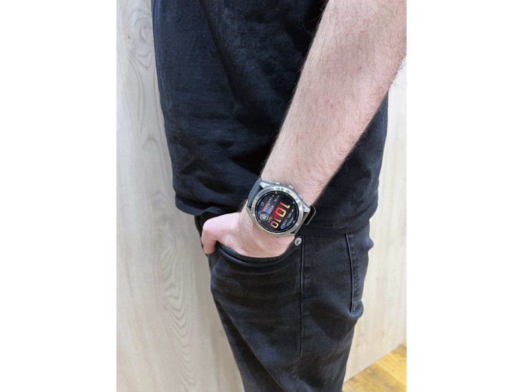 - Jasný a zřetelný AMOLED displej a titanová luneta