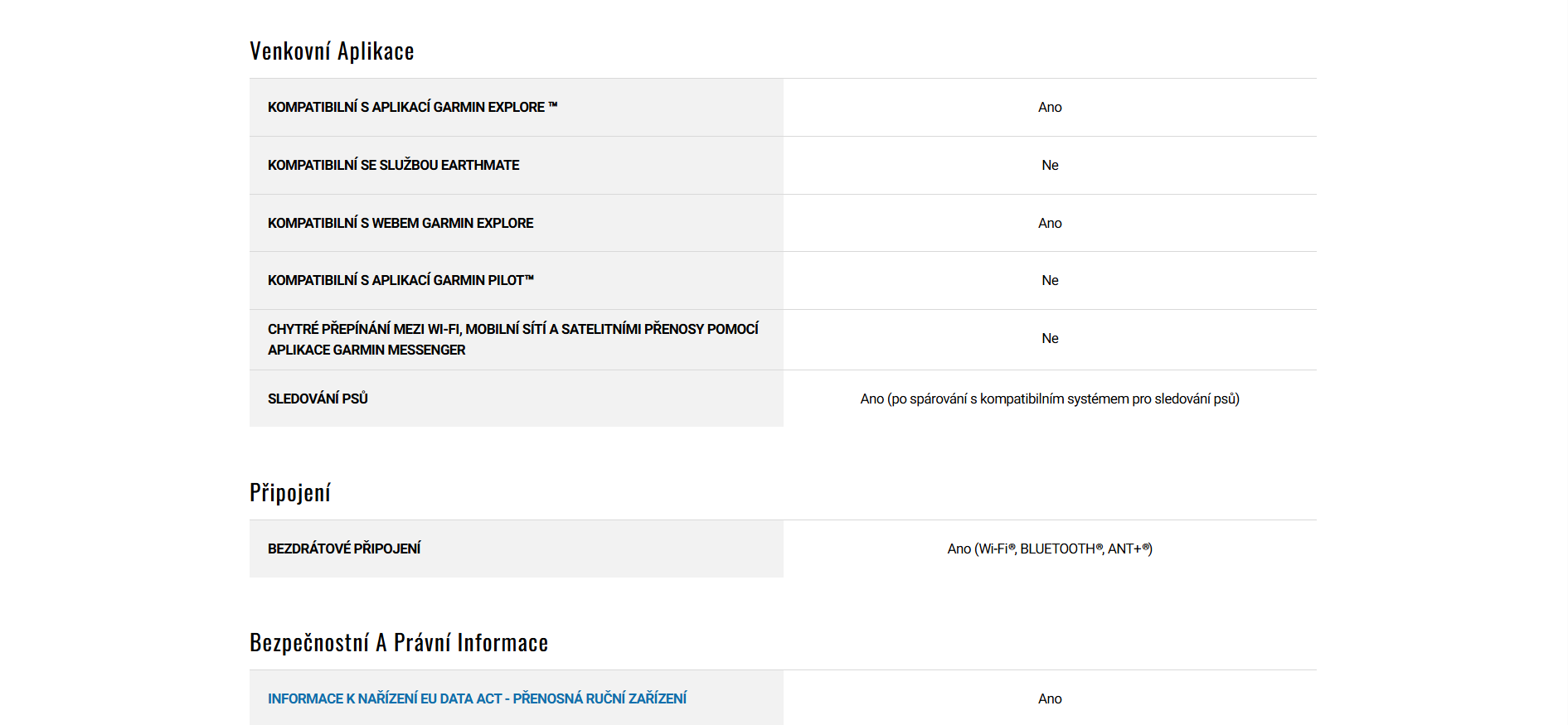 | Zástupce výrobce v EU : | Garmin Czech s.r.o. |