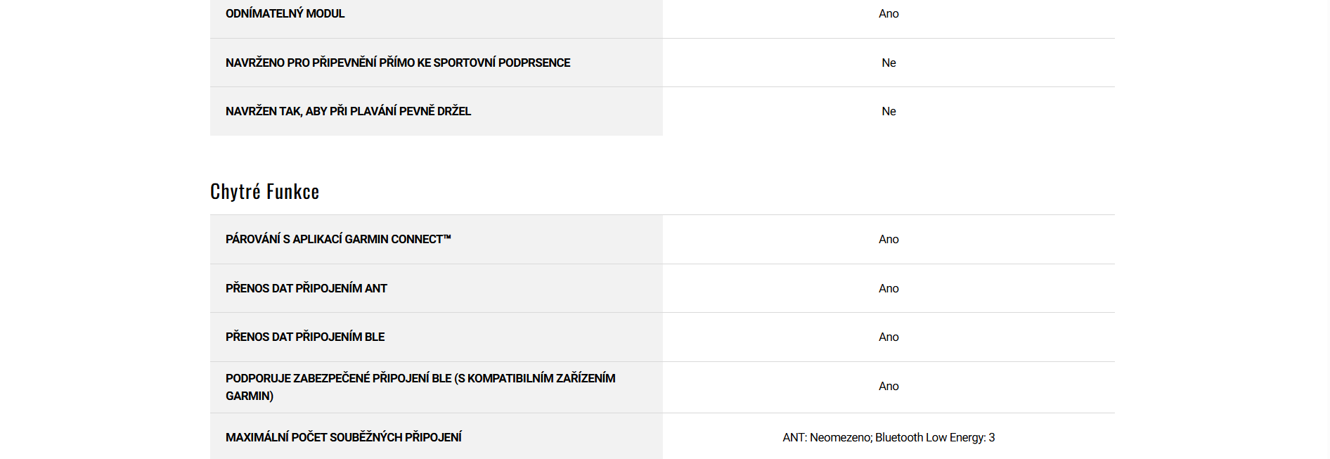 Malý a lehký modul snímače srdečního tepu přesně zapadne do popruhu hrudního pásu. Popruh je k dispozici ve dvou velikostech (XS–S a M–XL), abyste si mohli vybrat optimální variantu podle svých tělesných proporcí.