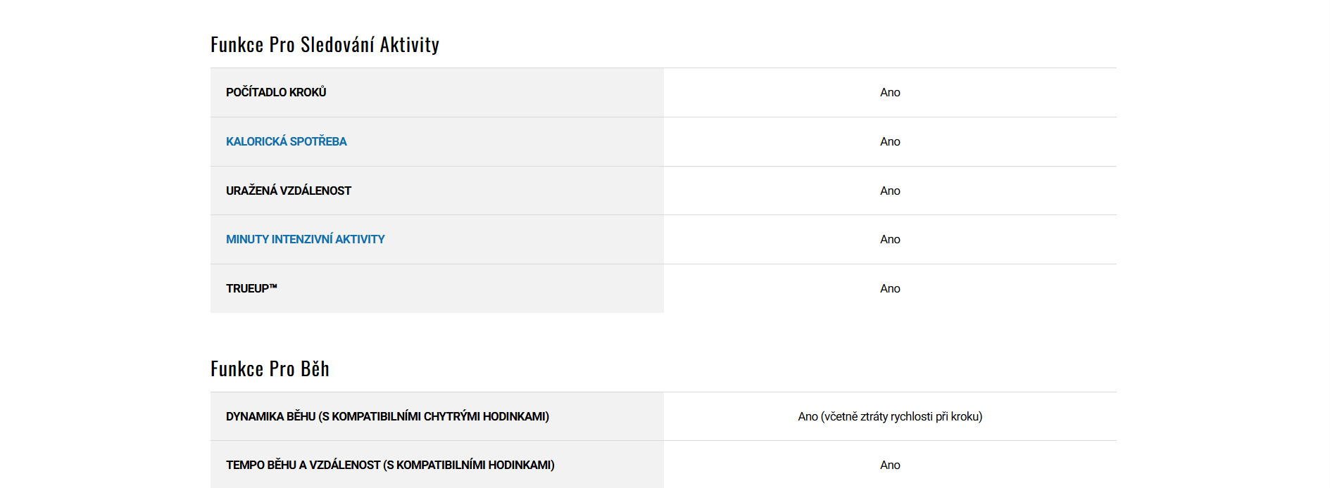 - Hodnoty dynamiky běhu po spárování s kompatibilními hodinkami