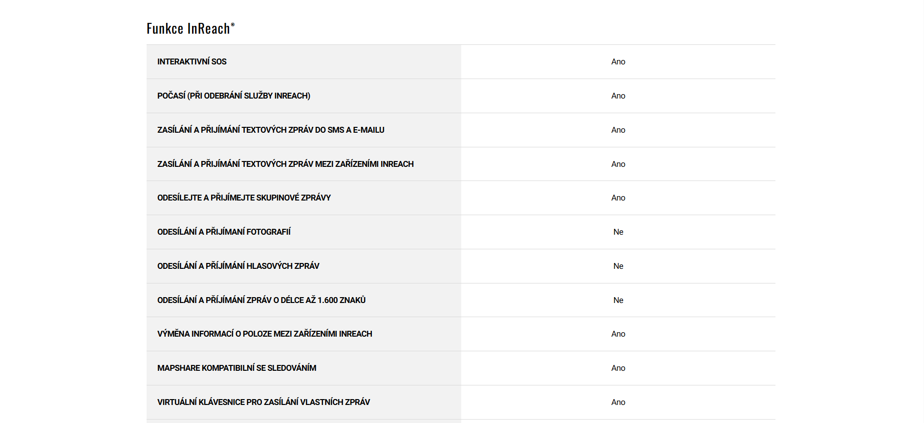 - INREACH zprávy a nouzová komunikace