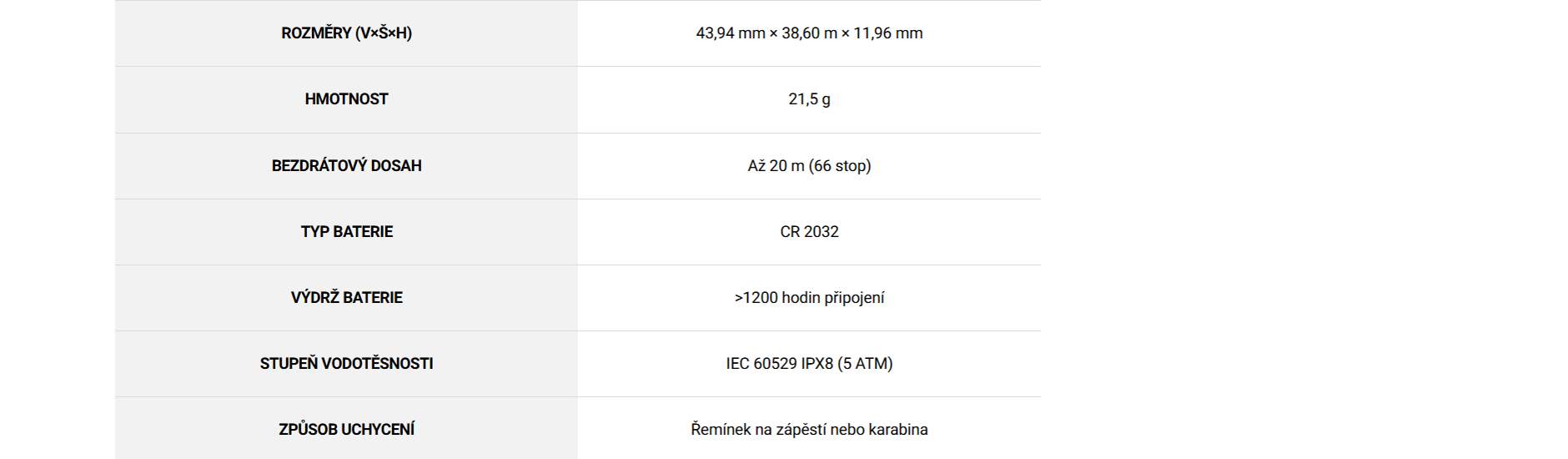 - Tag lze nosit na zápěstí, karabině nebo plovoucí klíčence.