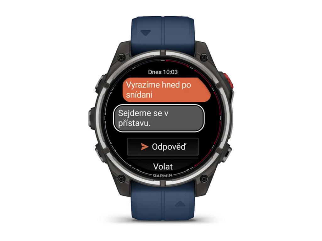 Díky satelitnímu nebo LTE připojení můžete odesílat zprávy ostatním uživatelům aplikace Garmin Messenger přímo z hodinek. Aplikace se automaticky synchronizuje s kontakty, jakmile hodinky spárujete s telefonem.