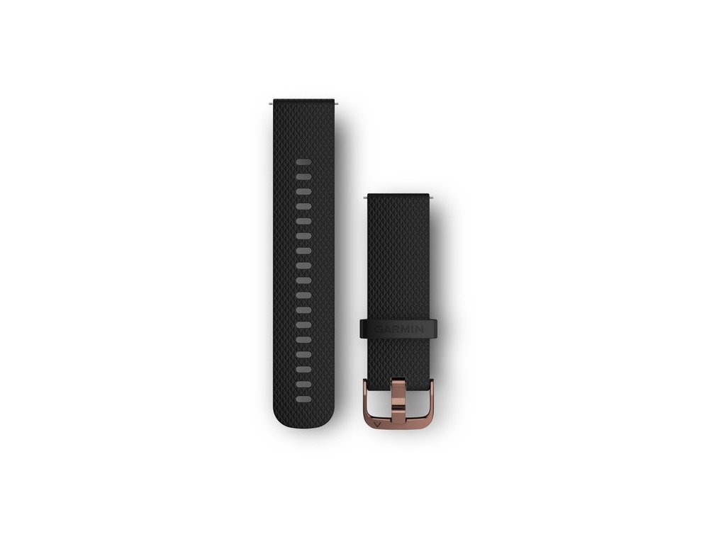 Náhradní černý sportovní řemínek pro hodinky Garmin vívomove Optic. Šířka řemínku 20mm, systém uchycení Quick Release. Kovová přezka v barevném odstínu Rose Gold. Použitelný pro hodinky: - vívomove Optic - vívoActive3 Optic - Forerunner 645 Pro obvod zápěstí 122-188 mmDoplňkové parametry