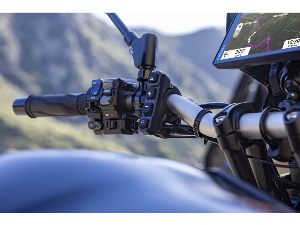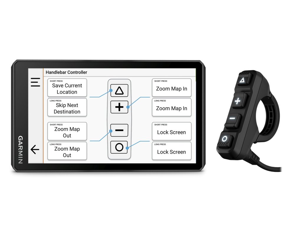 Po spárování s kabelovým ovladačem na řidítka (prodává se samostatně) můžete důležité funkce mapy ovládat tlačítky a ruce nechat po celou dobu jízdy bezpečně na řídítkách.