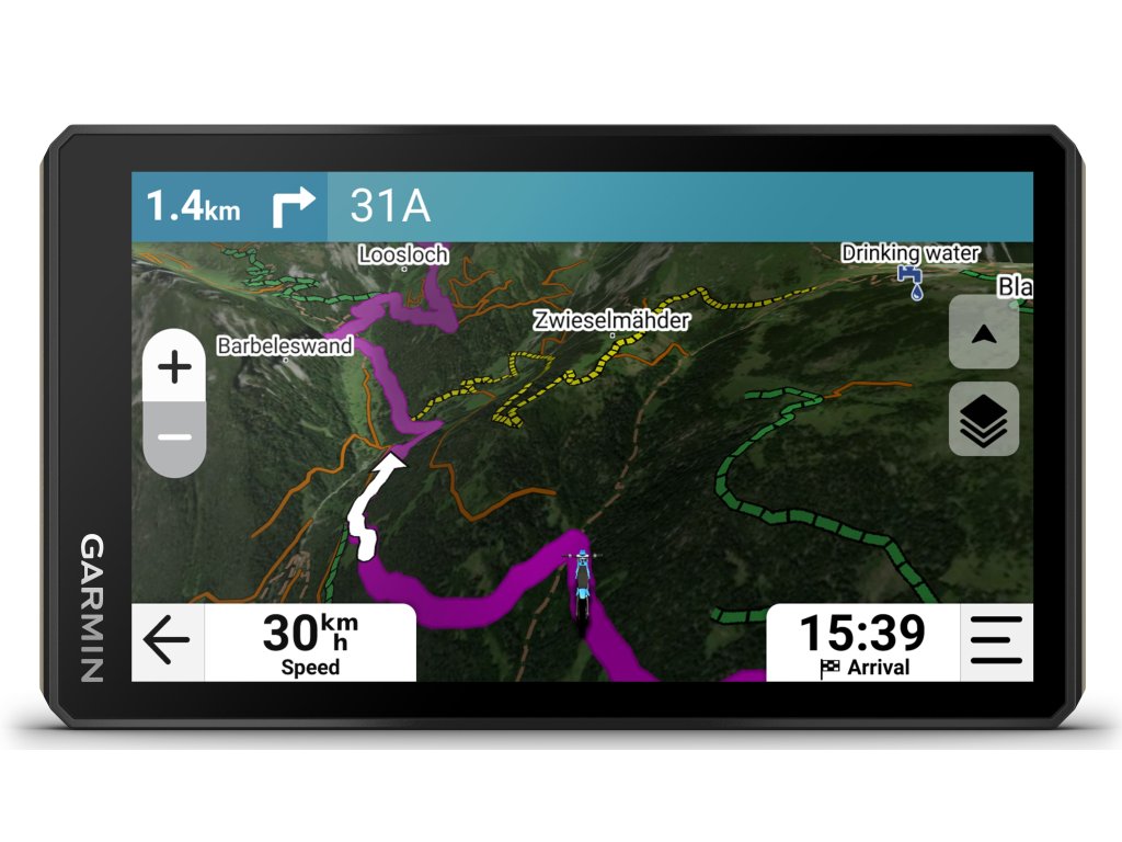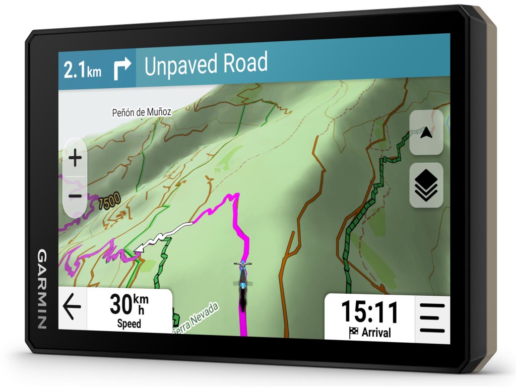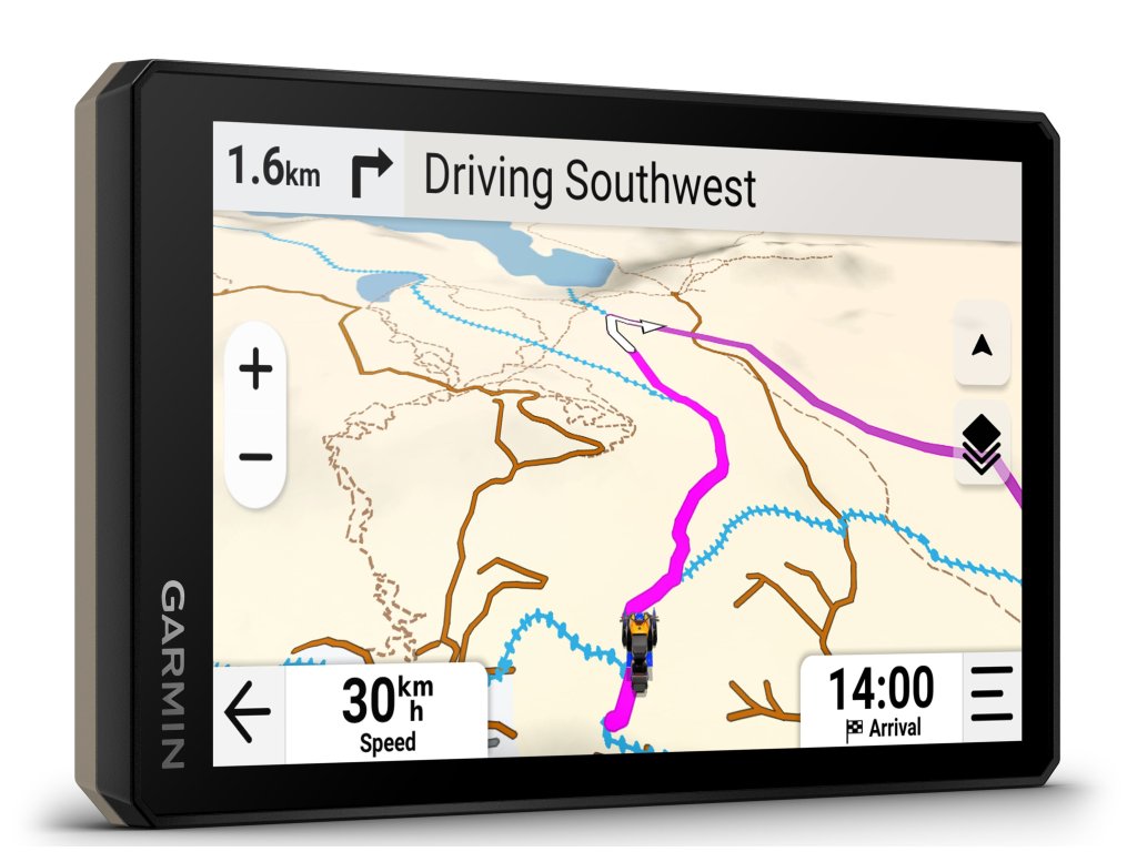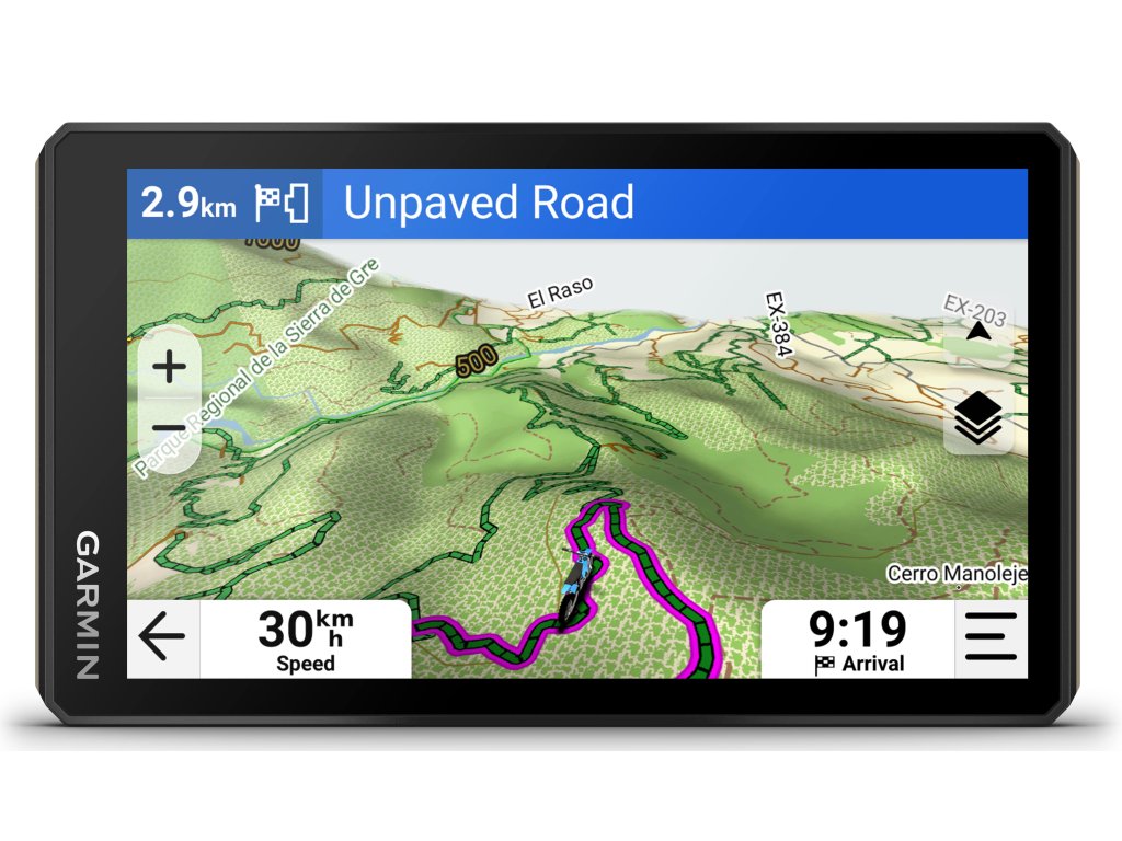 6″ navigace s vysokým jasem, rozlišením a dotykovou obrazovkou s možností ovládání v rukavicích je skvělý parťák pro zážitky v terénu. Je stvořená pro extrémní teploty i nepříznivé počasí (odolnost proti prachu a vodě IP67). Vylepšený procesor poskytuje vyšší výkon i pro vykreslování map a výpočty tras.