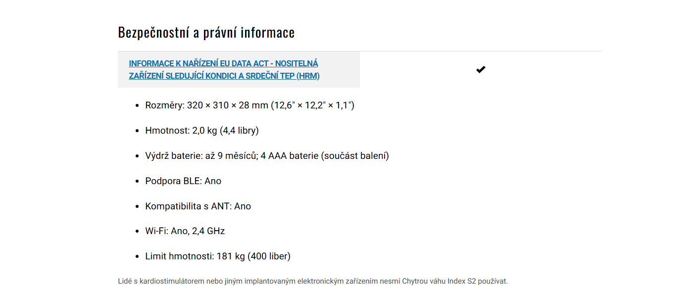 - Chytrá váha Index™ S2 Smart Scale (4 baterie AAA, 4 nožky s textilním povrchem, dokumentace)
