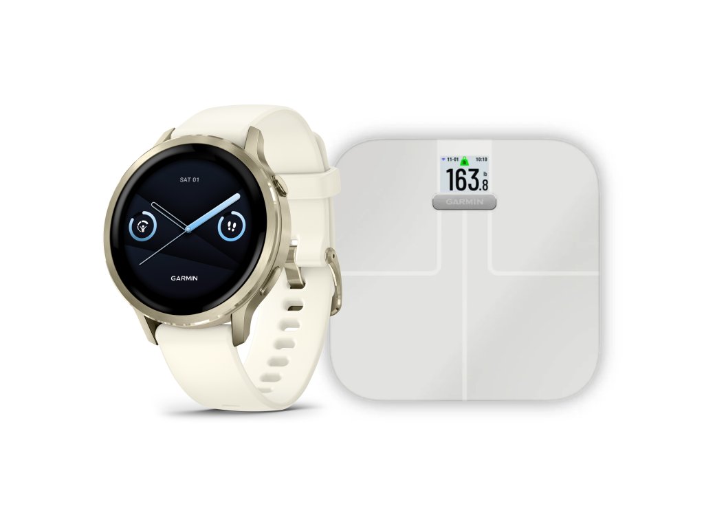 Garmin Venu 4 - 41 mm, Lunar Gold / Bone + Index™ S2 Bundle