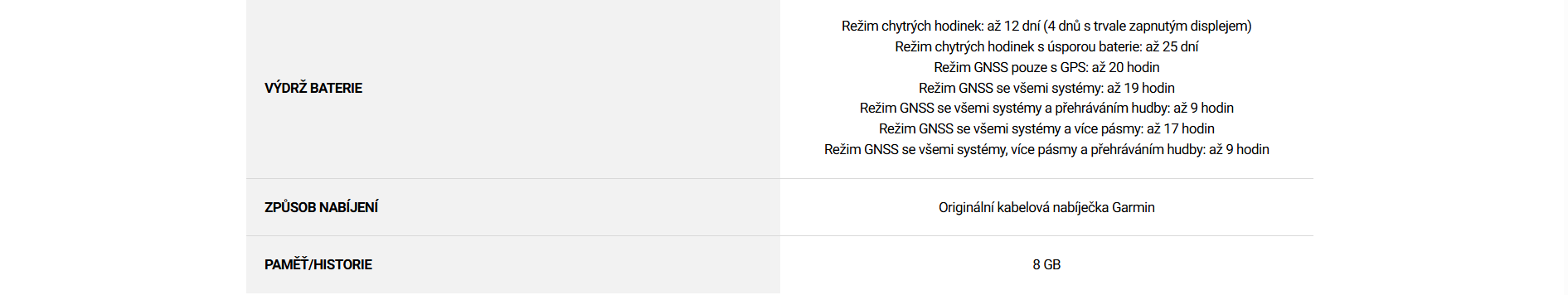 - Režim GNSS se všemi systémy a přehráváním hudby: až 6 hodin