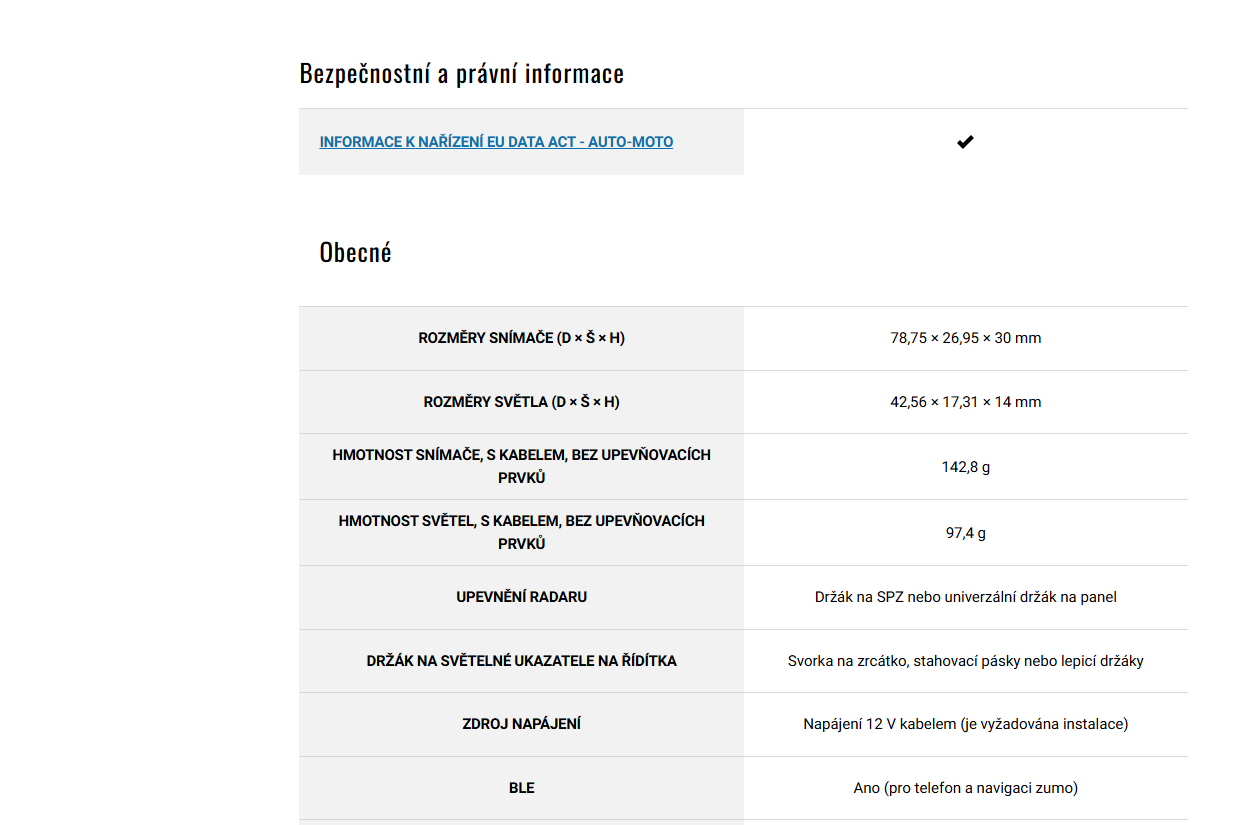 Radar zūmo R1 Radar má odolné provedení (ochrana IP67 proti vodě a prachu), takže snadno zvládne i nepříznivé počasí a náročné podmínky na silnici.